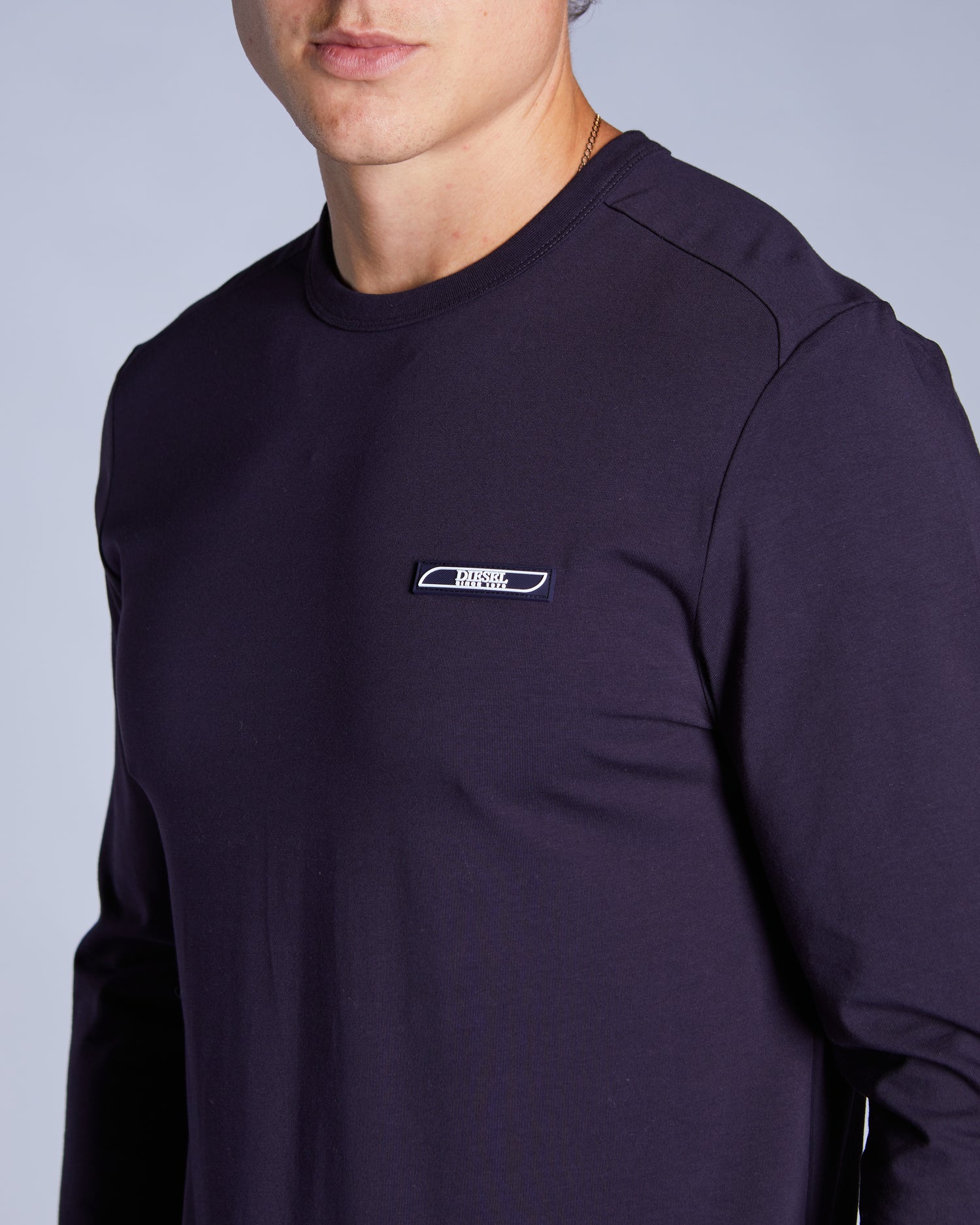 A cotton stretch long sleeve t-shirt with a DIESEL logoed rubber badge on the chest. Team it with one of our Classic Track hoodies & jogger for a complete Classic Track look.