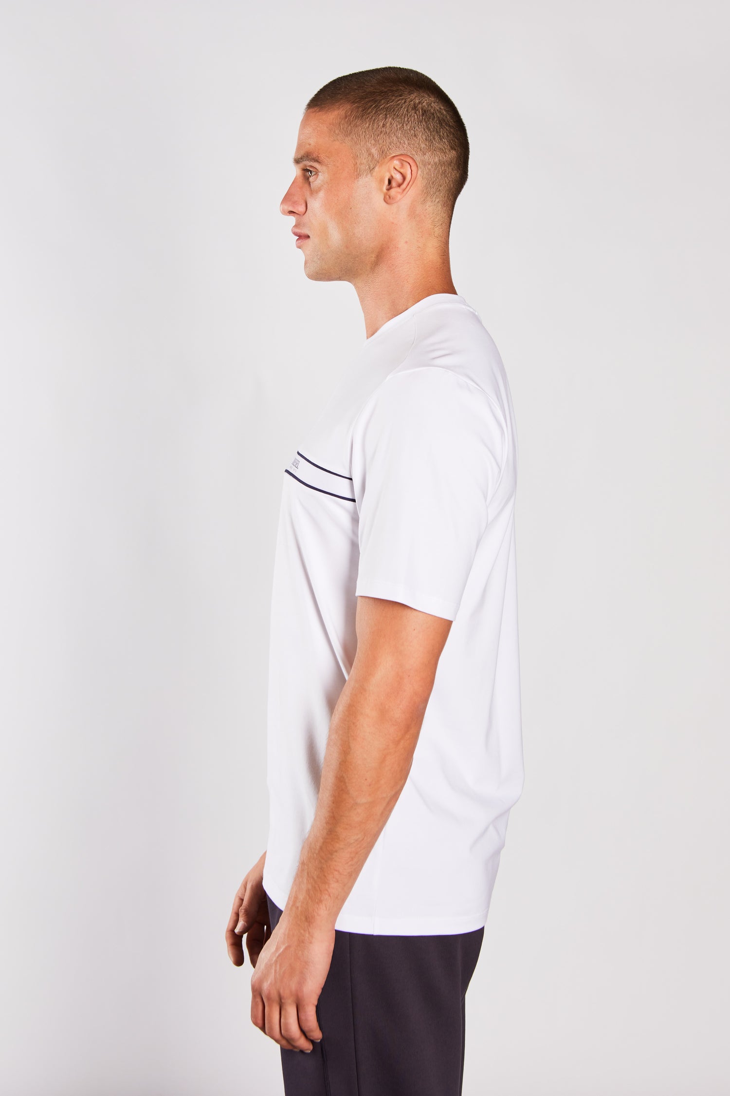 A cotton stretch short sleeve t-shirt with a knitted & branded tape across the chest. Team it with one of our Classic Track hoodies & jogger for a complete Classic Track look.