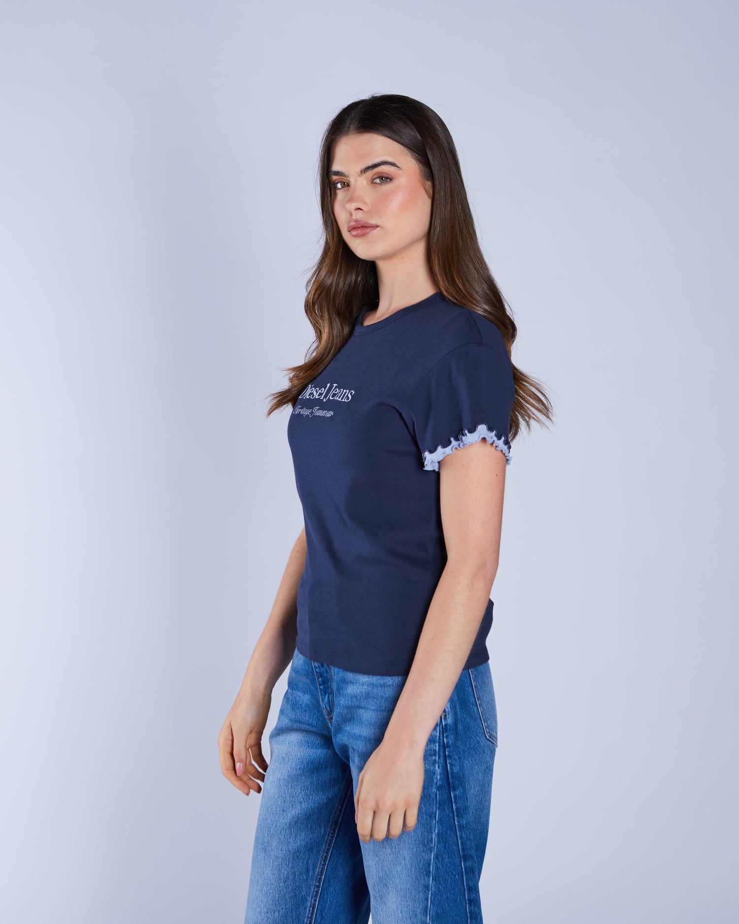 Introducing our premium close-fit t-shirt. Designed with an embroidered DIESEL logo at the chest and contrast lettuce hem double-layered sleeves. Team it with a pair of our jeans for an effortless, polished look.