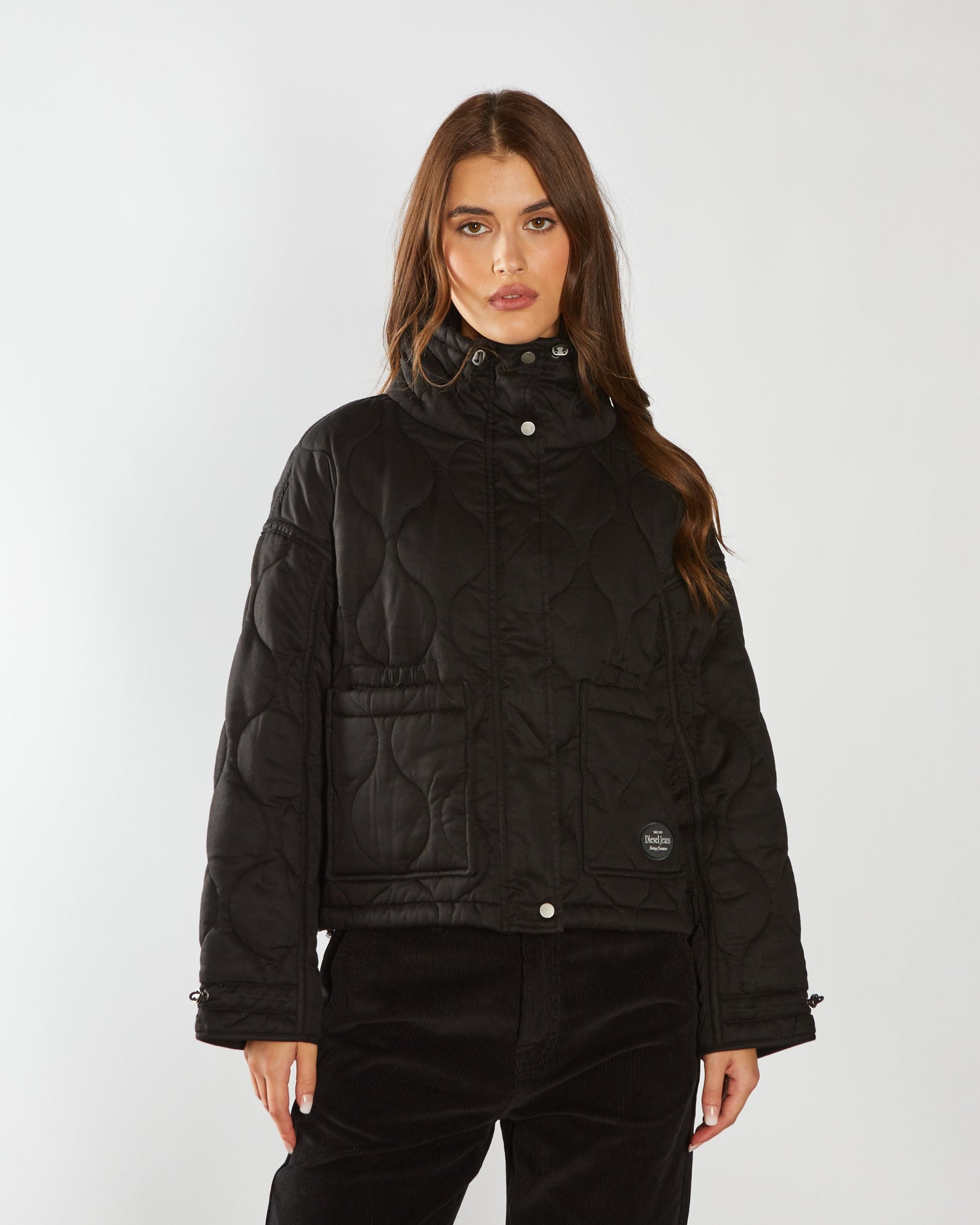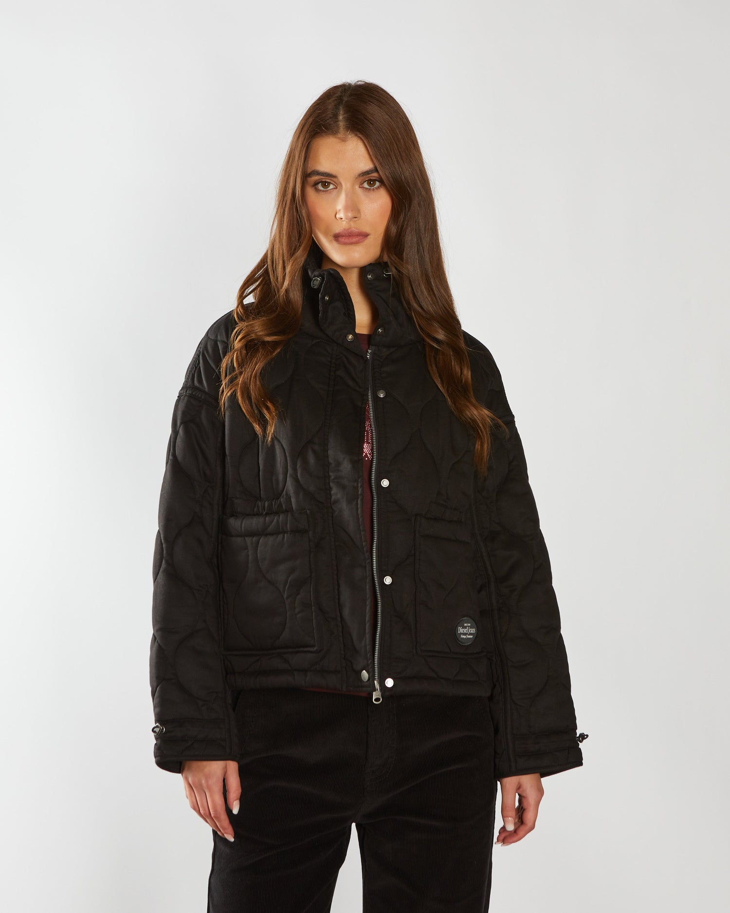 Introducing our relaxed-fit onion quilted jacket, featuring a woven branded DIESEL badge on the front pocket. This stylish jacket features quilted patch pockets with internal elasticated pockets for added convenience, as well as a front zip closure complemented by metal snap buttons for a polished finish.