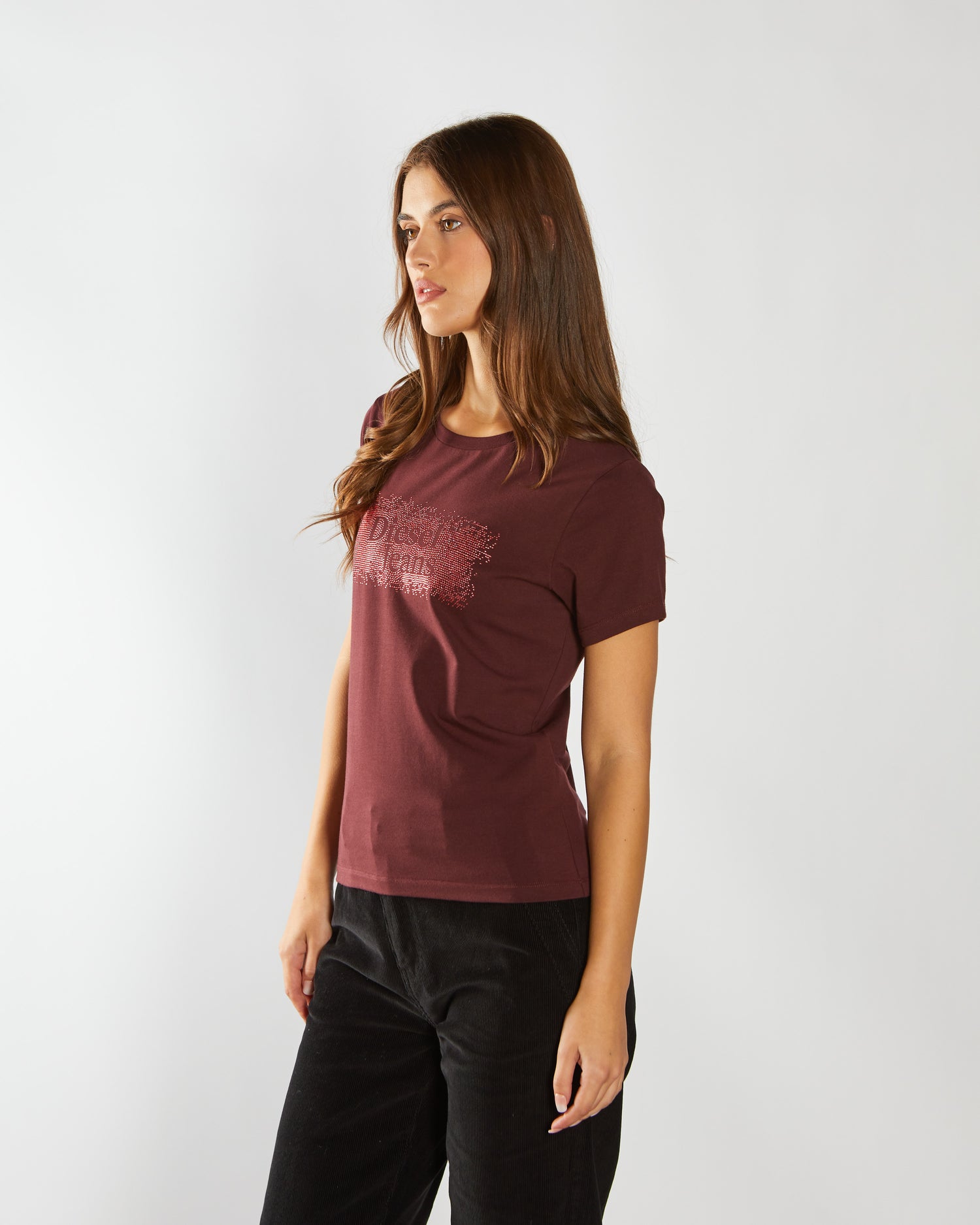 Introducing our premium added-stretch t-shirt. Designed with an rhinestone DIESEL logo embellished at the chest. Team it with a pair of our jeans for an effortless, polished look.