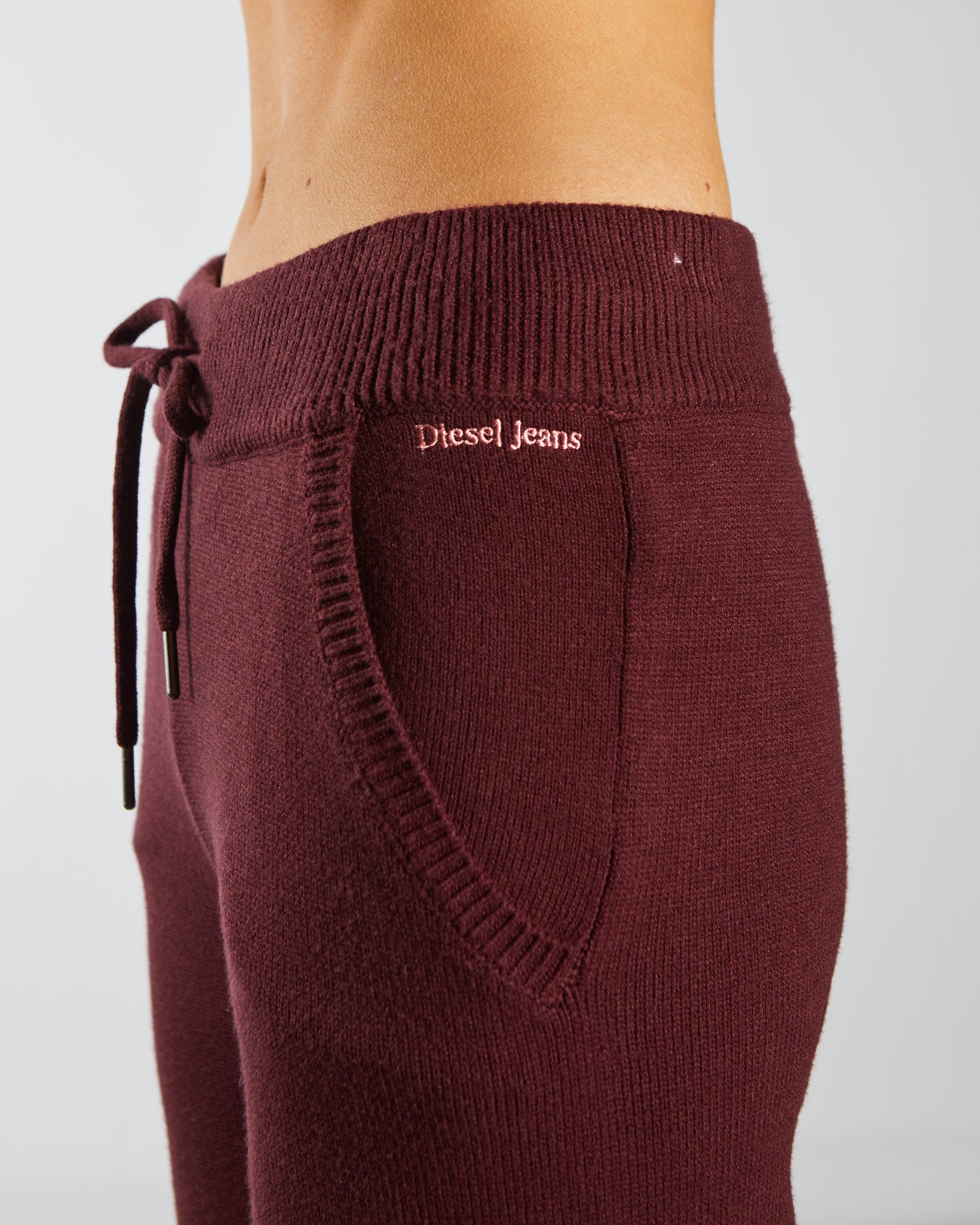 Introducing our super soft knitted trousers featuring a ribbed waistband, side pockets and drawcords designed with branded DIESEL aglets. This trouser features an embroidered DIESEL logo below the pocket. Team it with our Bonnie Knit for an effortless, polished look.