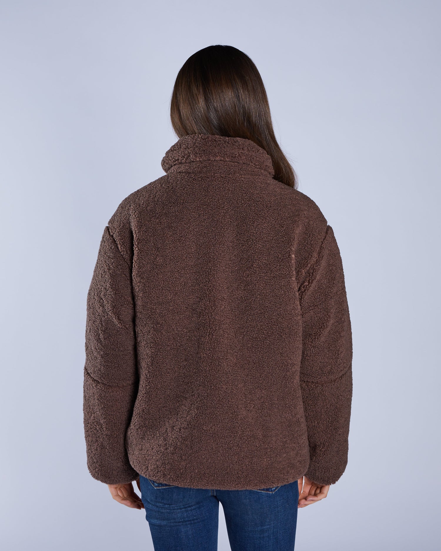 Introducing our plush teddy sherpa jacket with leather-look trim. Woven DIESEL badge on wearer's front pocket. This stylish jacket features front patch pockets complemented with leather-look trim for a polished finish, as well as a front zip closure.