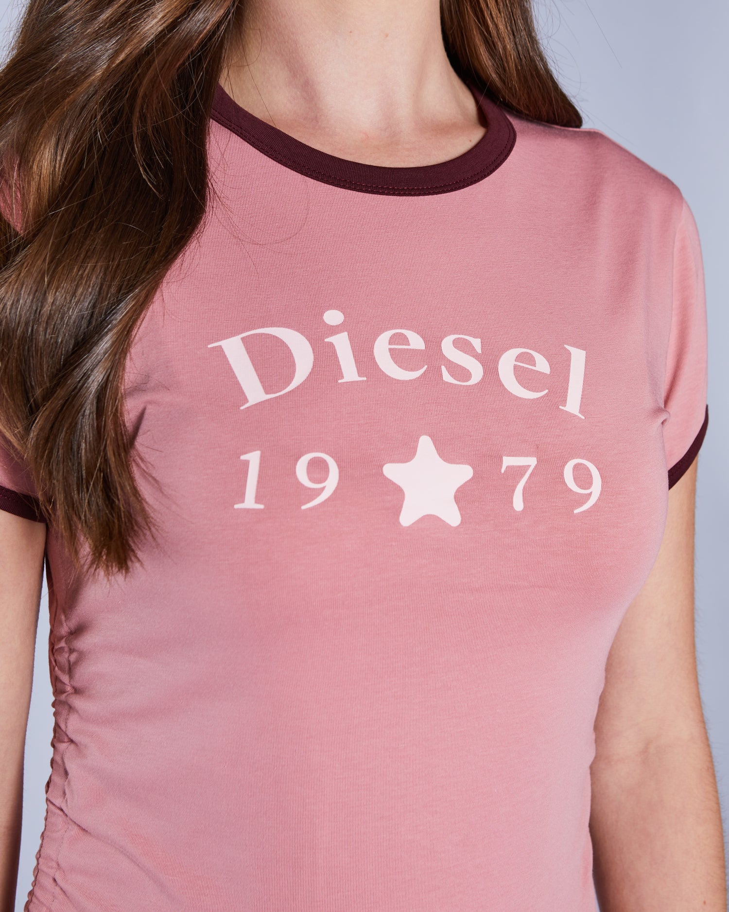Introducing our premium added-stretch ringer tee. Designed with a graphic print DIESEL logo at the chest and contrast trim at the cuffs and neck opening. Team it with a pair of our jeans for an effortless, polished look.