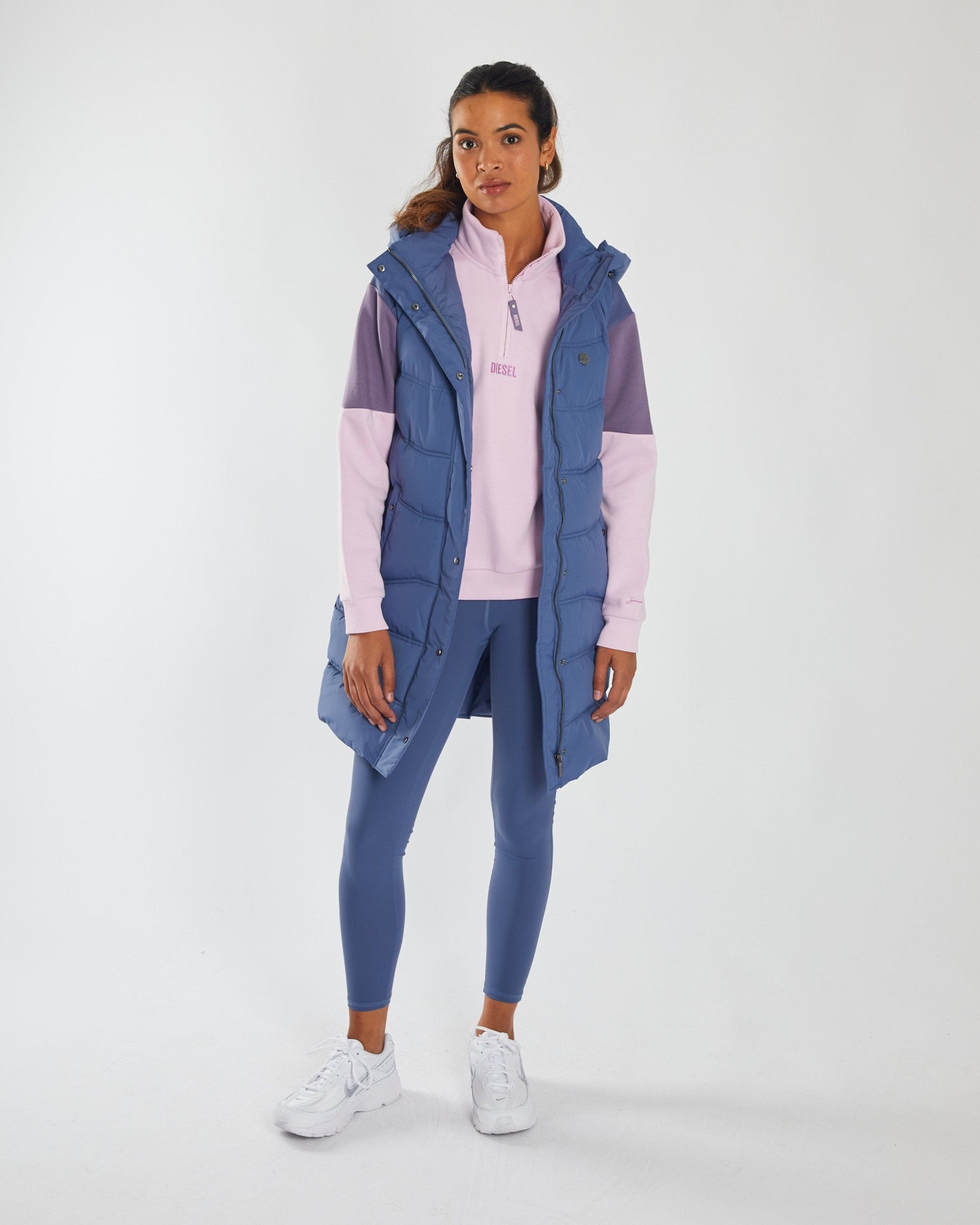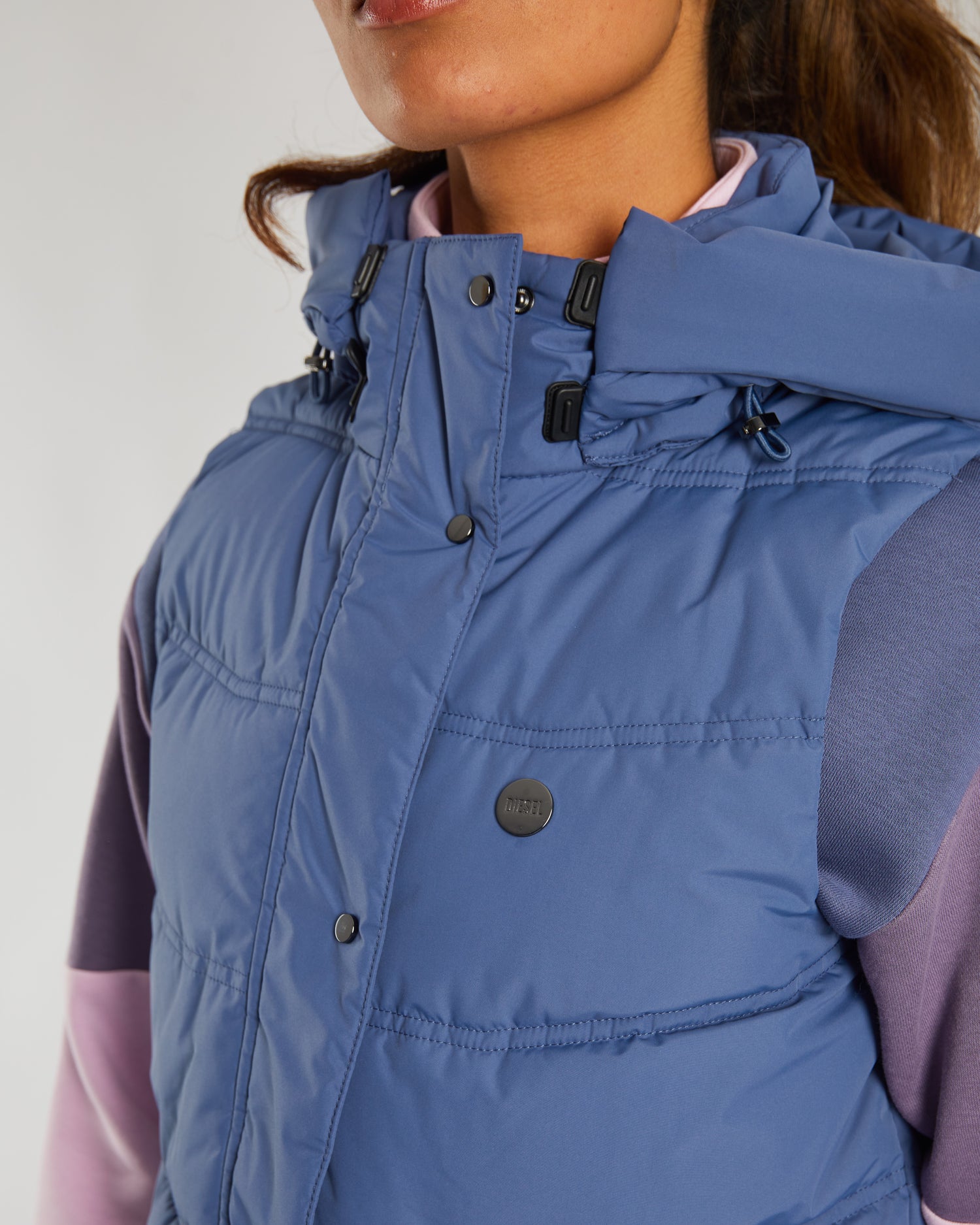 Our Gilet with new quilting pattern, charcoal shiny metal trims, front fleece lined pockets and removable hood. Metal Diesel badge on wearers left chest.