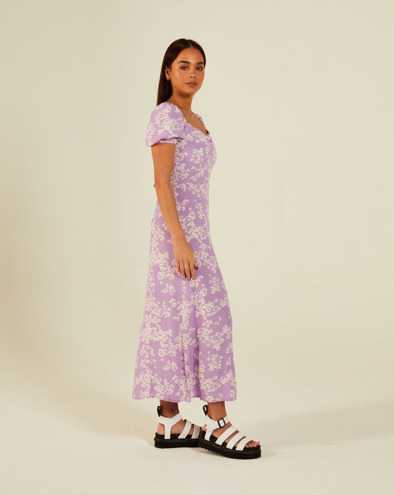 Printed viscose midi dress with a front slit, puff sleeves and elasticated back panel for comfort. Branded with a Diesel metal badge. Model wears XS. It is recommended that you stick to your regular size. 100% viscose