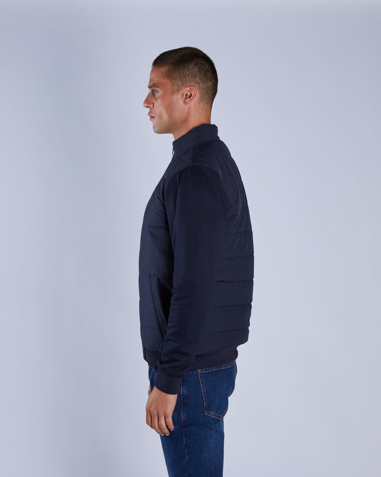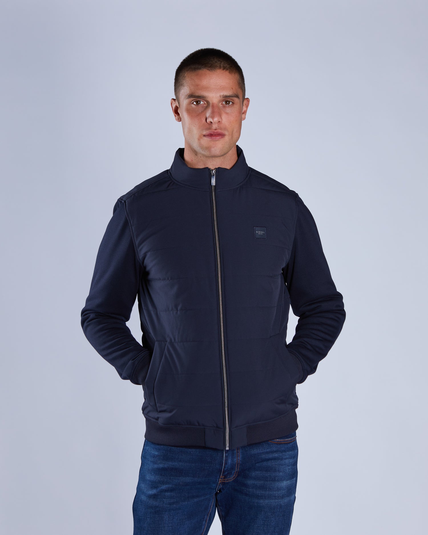 Men's hybrid jacket with quilted chest and stand collar. Soft, stretch sleeves and back panel, paired with ribbed cuffs and hem for comfort fit. It has our premium Diesel embroidered badge on chest.