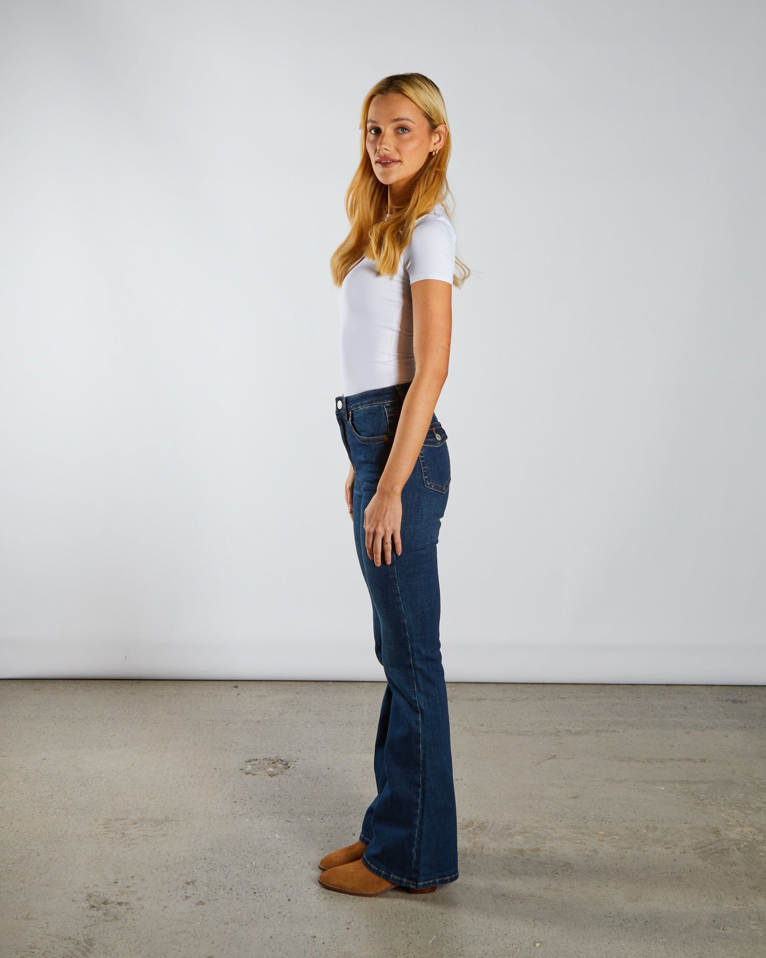 High Rise, Sculpted thighs and a classic boot cut hem. Soft premium stretch denim for the perfect shape. Zip fly, Diesel Branded hardware.