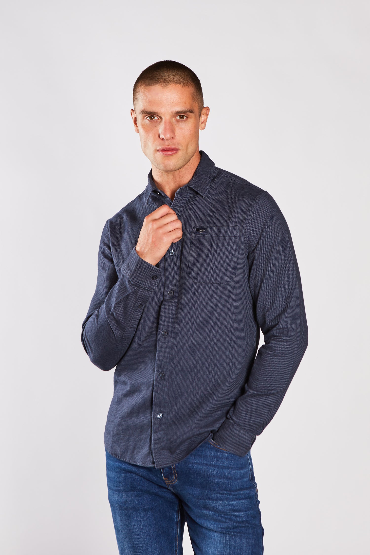 This shirt is crafted from premium cotton with a micro dot weave, featuring a single chest pocket with Diesel badge and contrast branded buttons. Wear buttoned for a clean, smart look.
