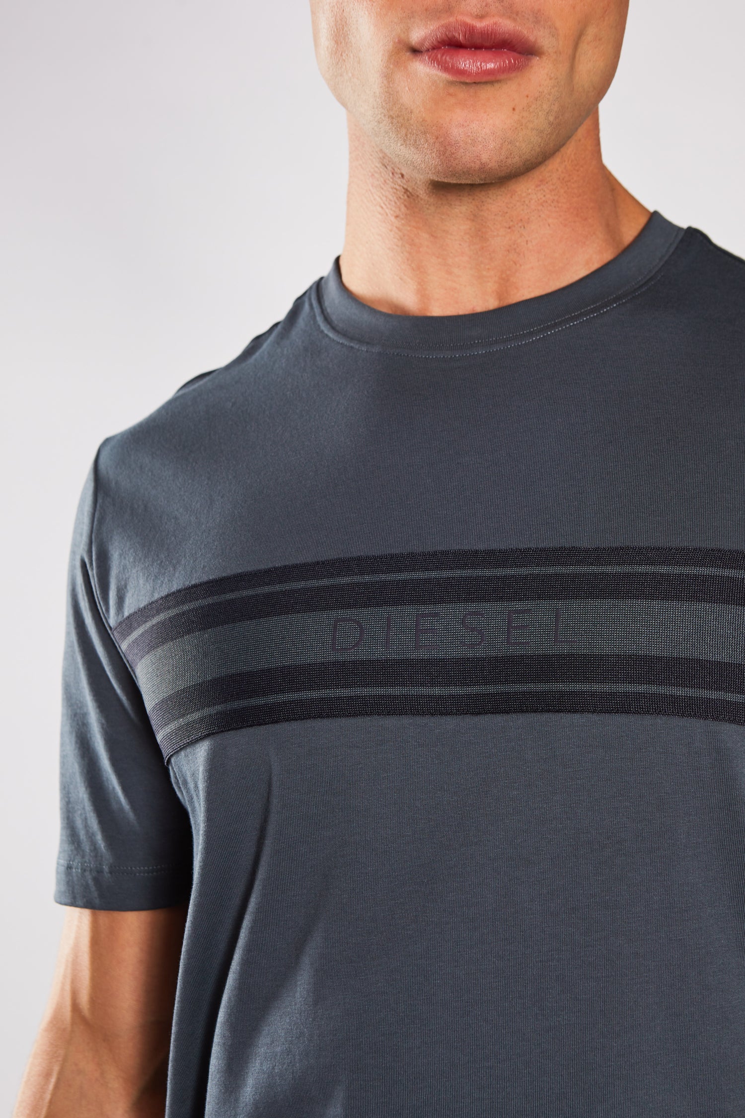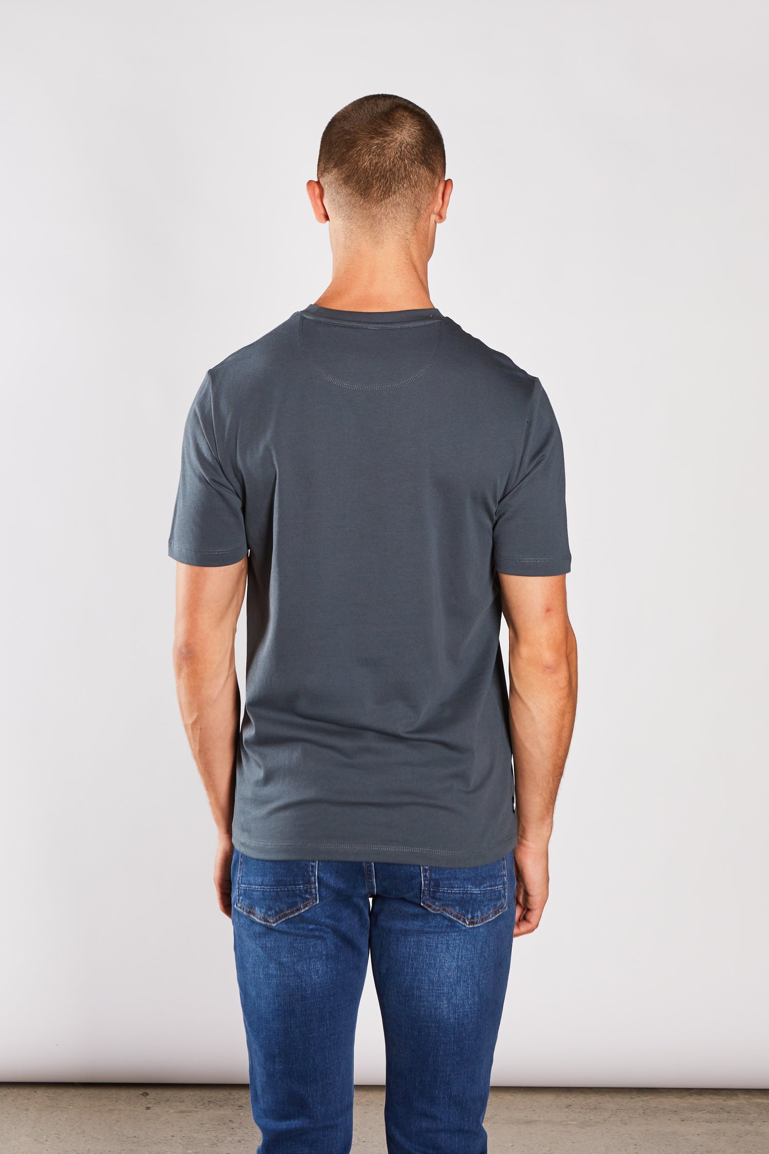 Premium organic cotton jersey t-shirt. Knitted striped tape on the chest. Pair with a pair of our jeans & a smart sweat style for a smart causal look