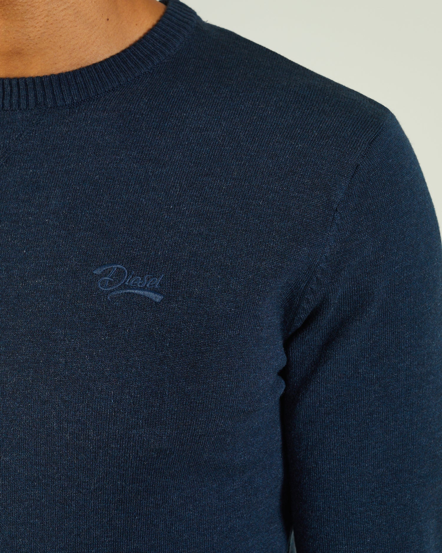 Cotton blend crew neck sweater, Diesel logo embroidery, rib neck hem and cuffs.
