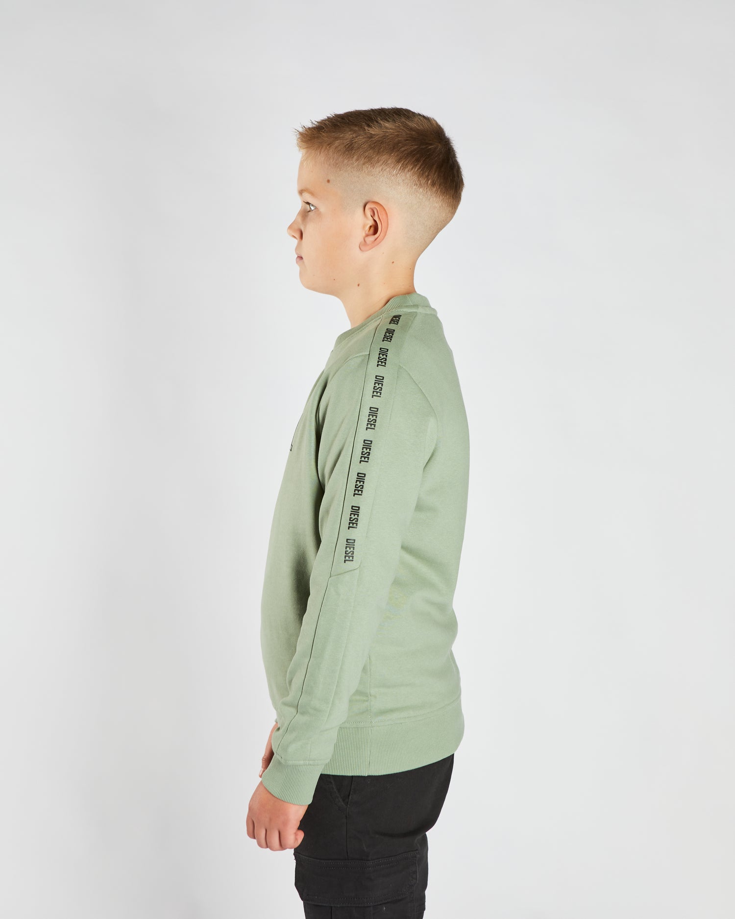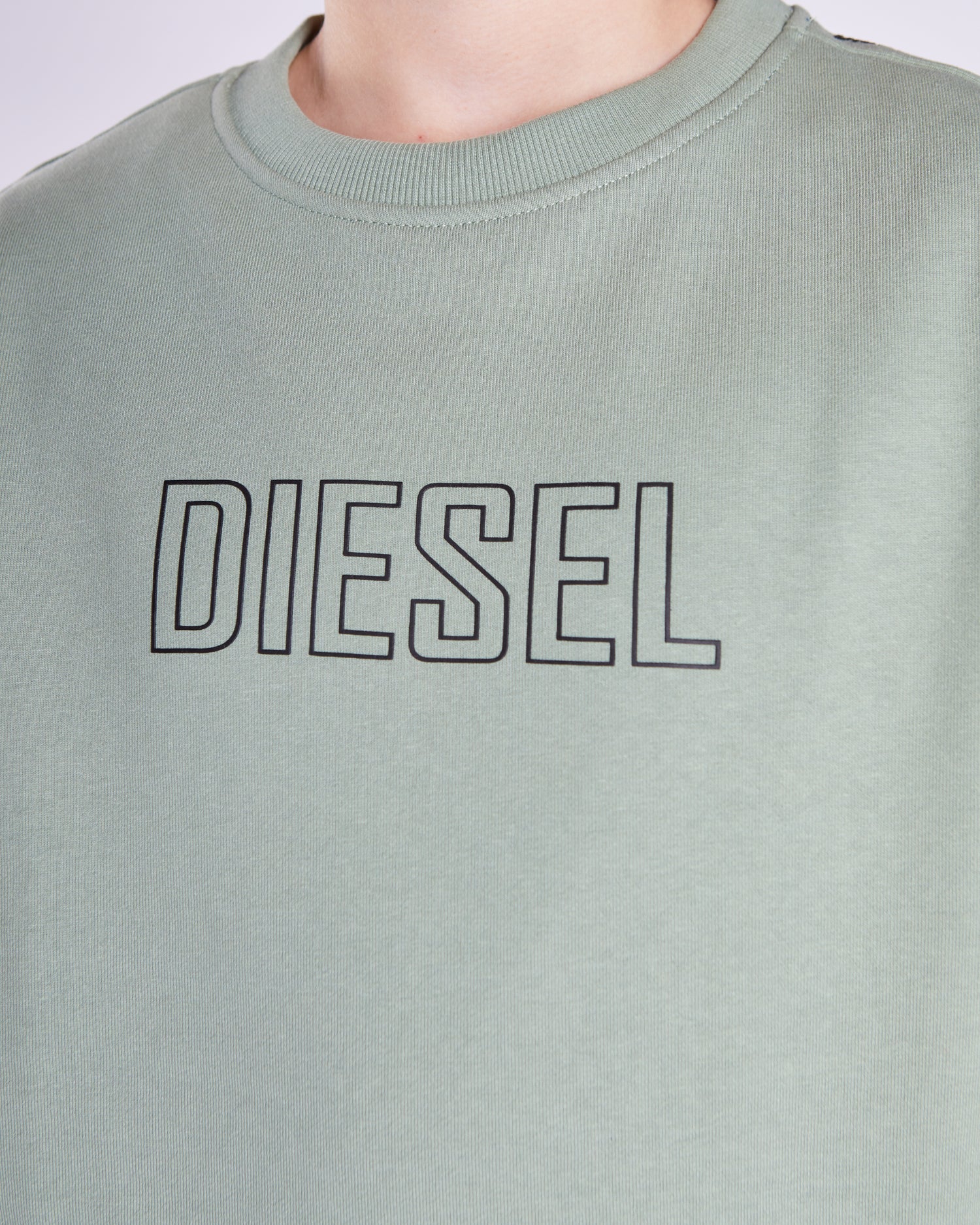 Diesel boys sweater, featuring Diesel branding on the centre of the chest and Diesel taping on the arm.