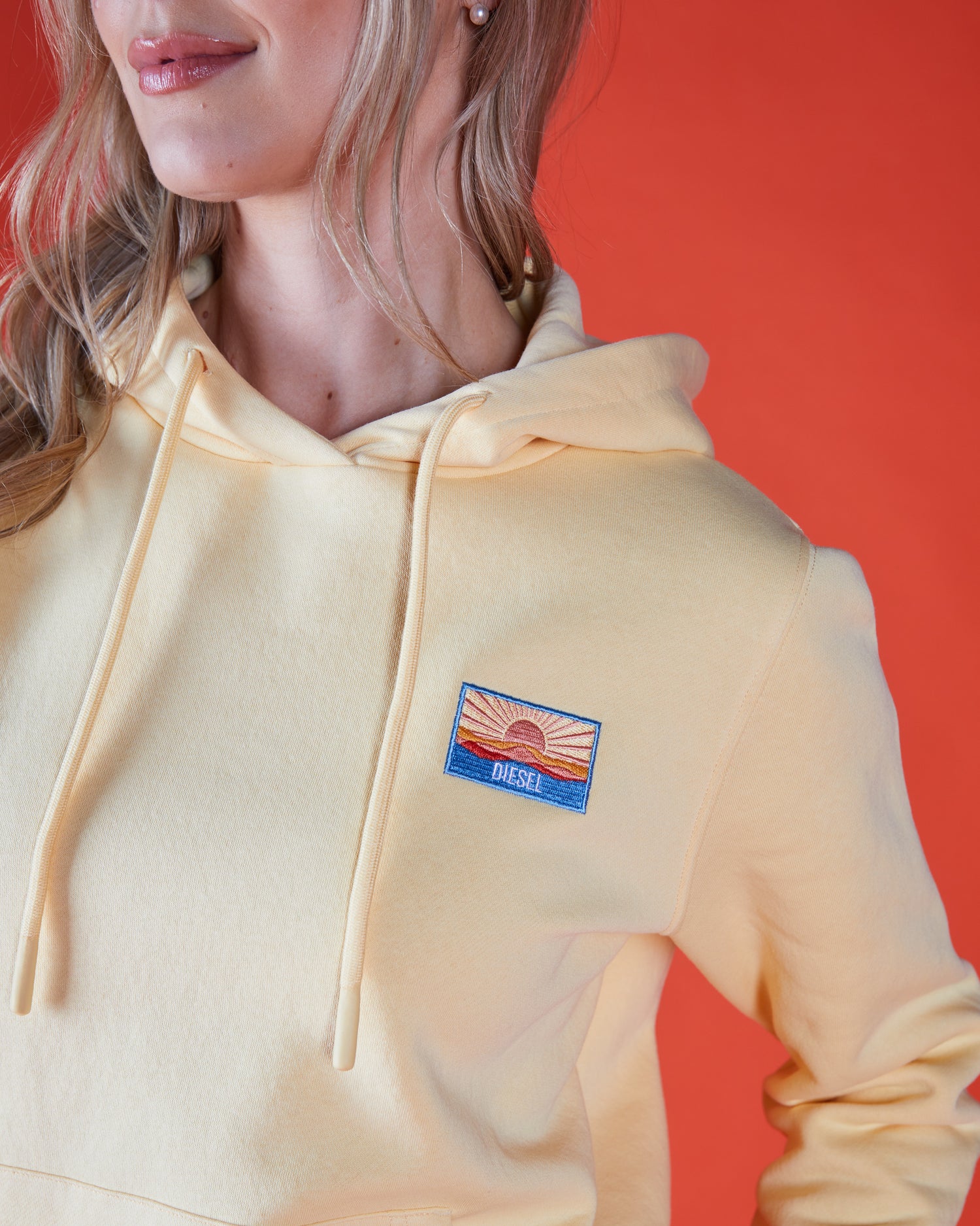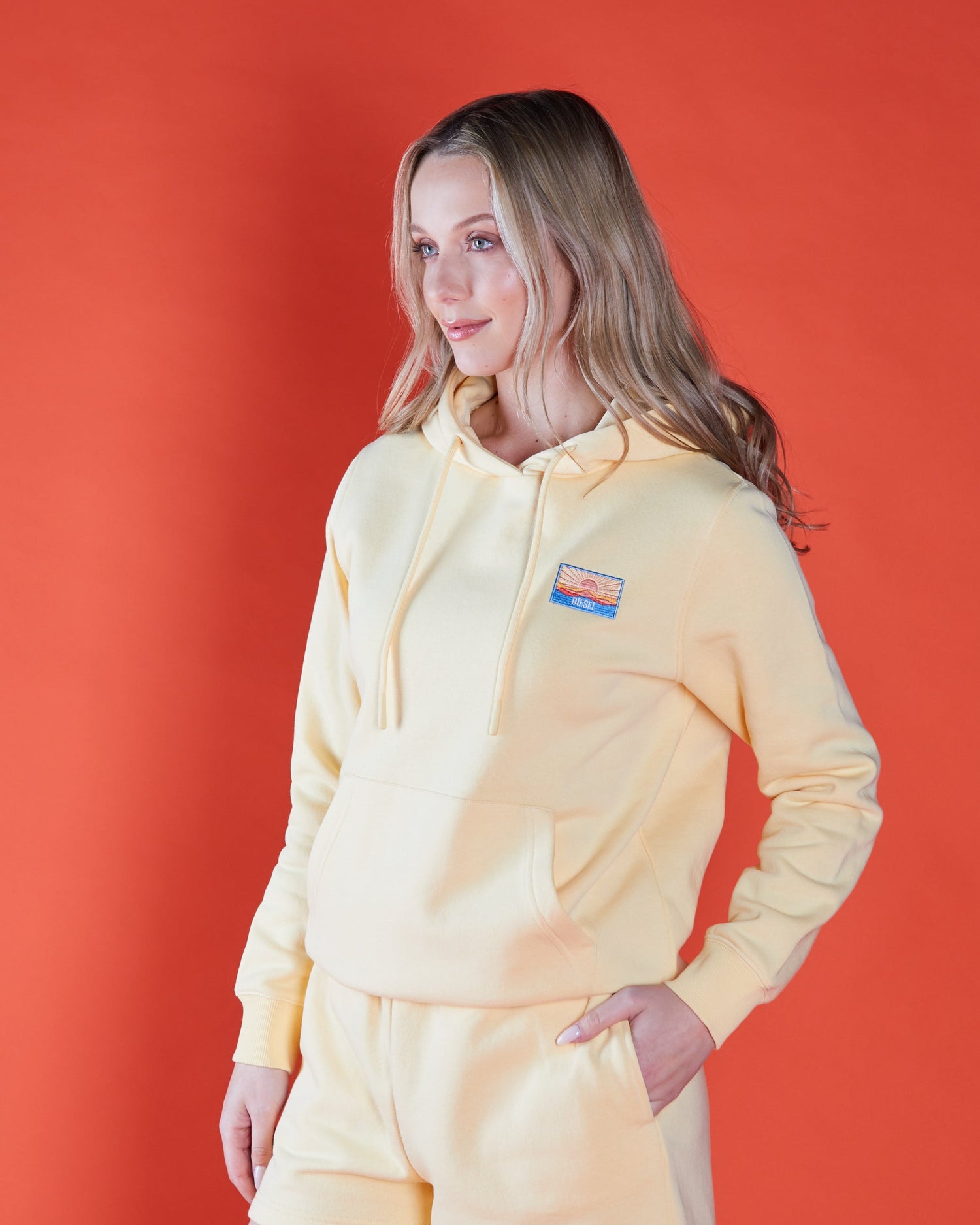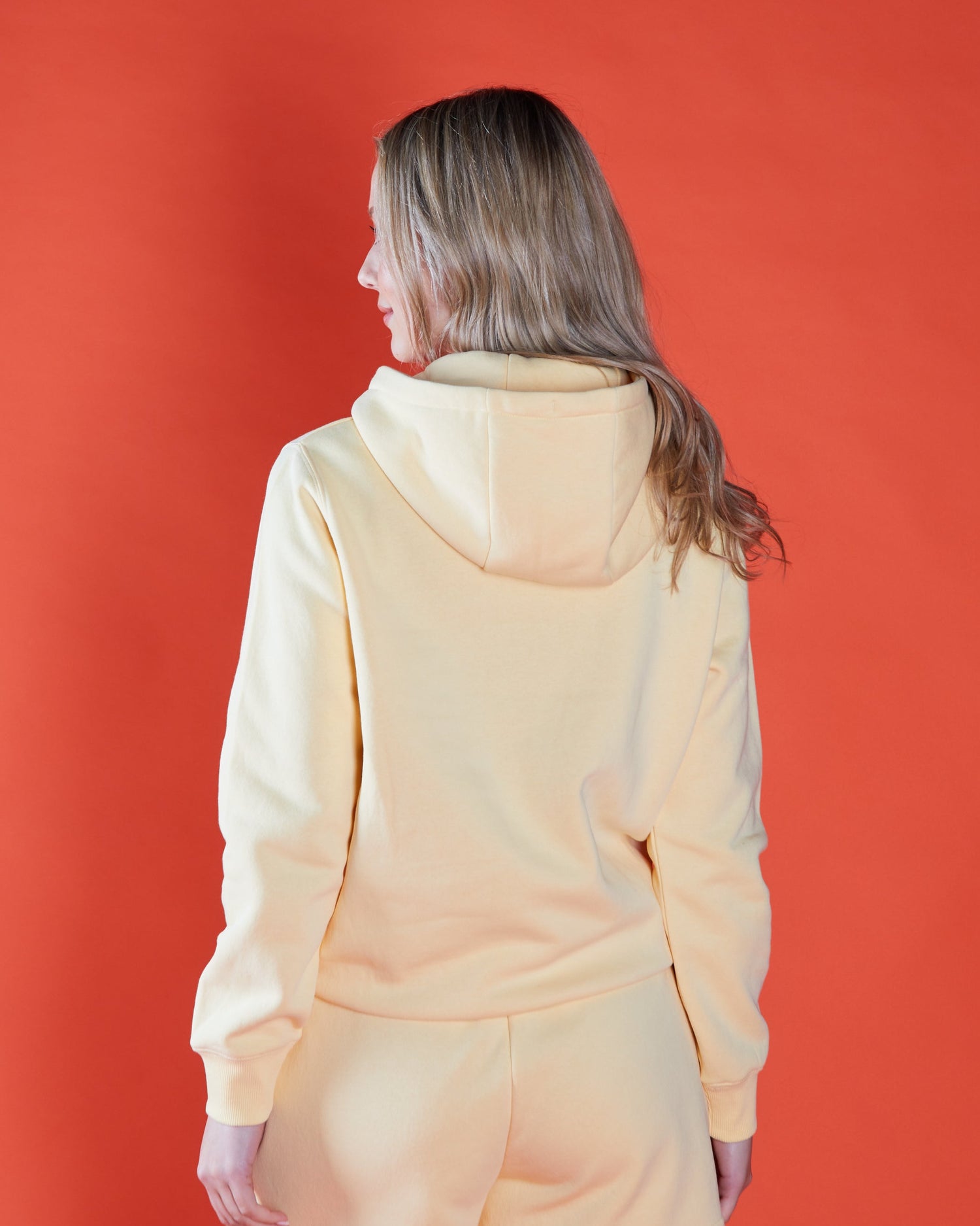 Our regular fit hood with embroidered badge on the chest. Details include drawcord hood and kangaroo pocket.