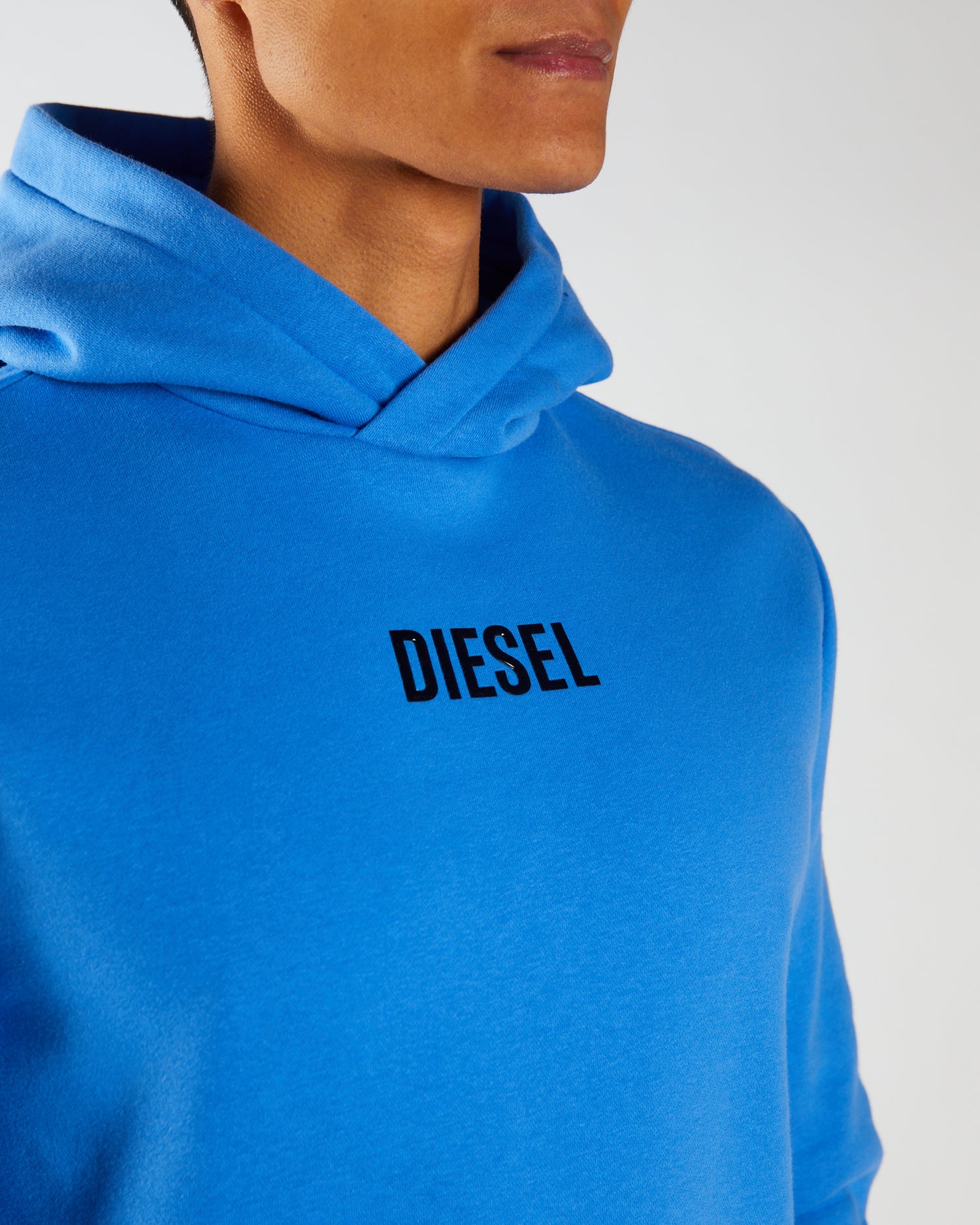 Soft, brushed interior fleece hoodie with DIESEL chest hi-shine branding at chest and new flexi rubber badge at sleeve. Details include front kangaroo pocket and ribbed cuffs and hem for comfort.