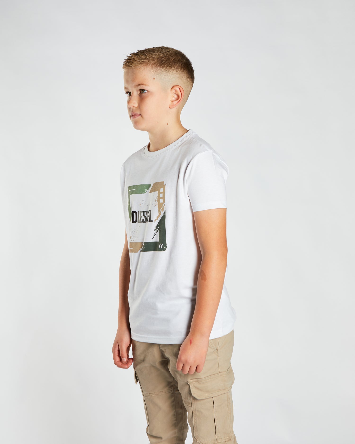 Boys logo print chest detail tee Model is aged 10 and wears age 11 to 12