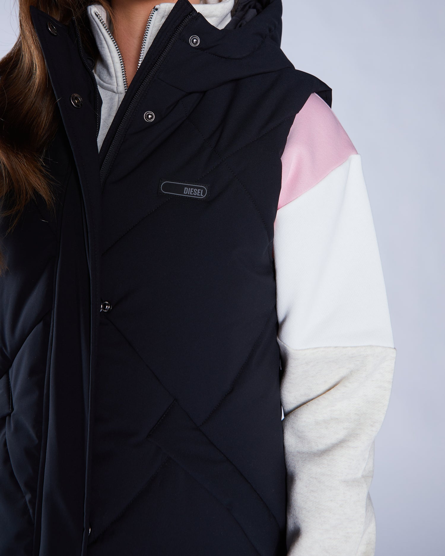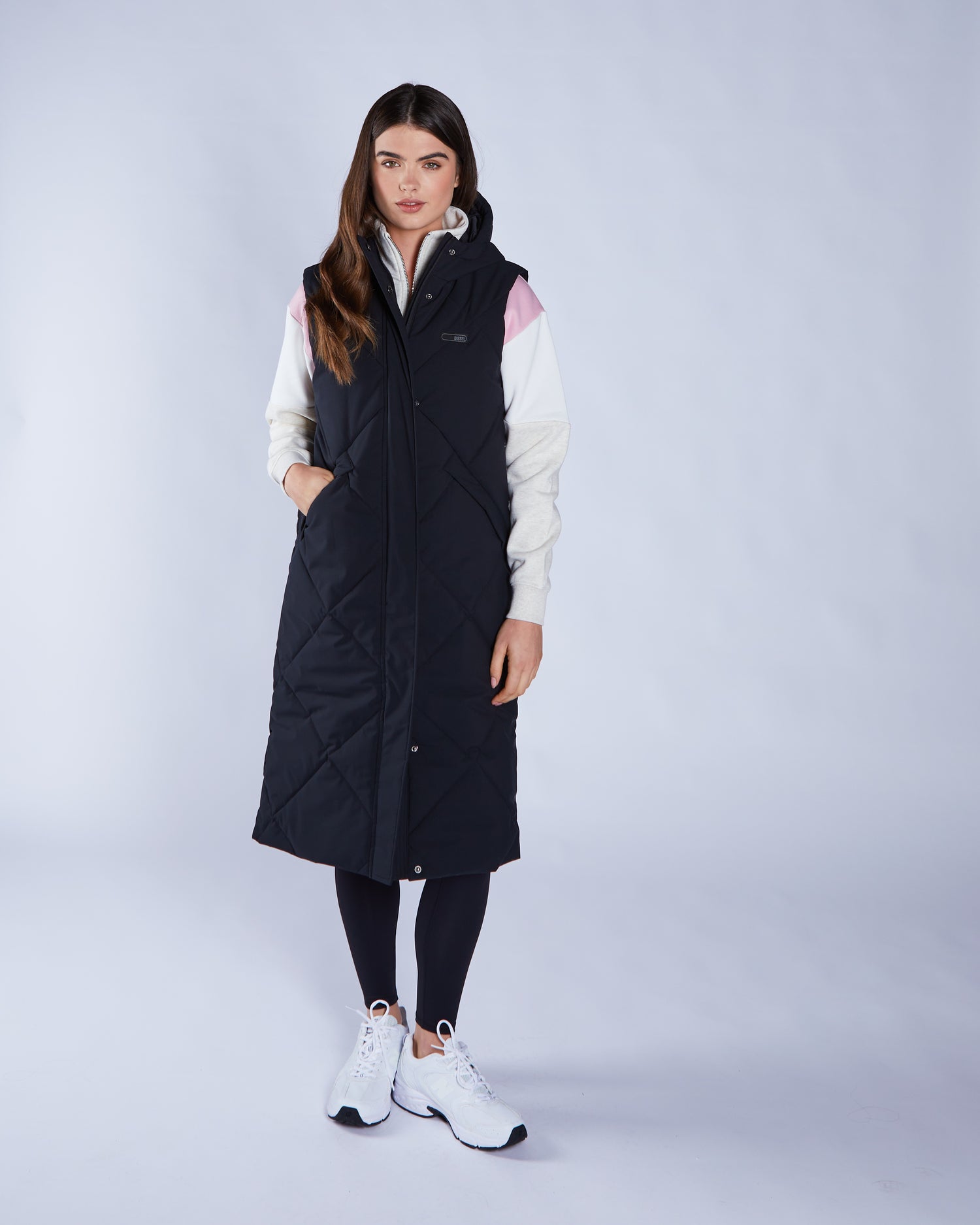 This stylish diamond quilted gilet is the perfect wardrobe update for winter. Featuring a lightweight soft diamond quilting pattern, midi length, hood and internal and external pockets. This gilet would be perfect worn over our knitwear or sweatshirts.
