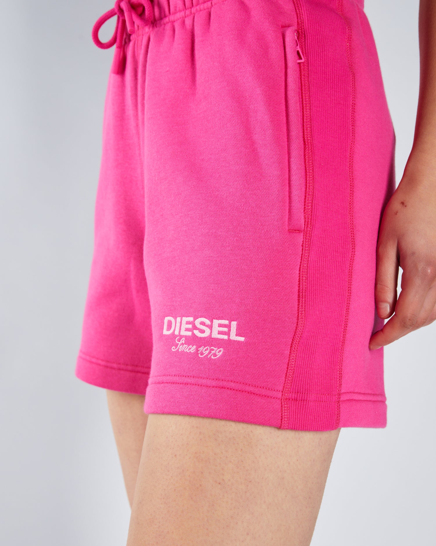 Our new relaxed fit short with ribbed size panels. Embroidered Diesel artwork on wearers left leg. Features include drawcord waistband and side pockets with branded zips.