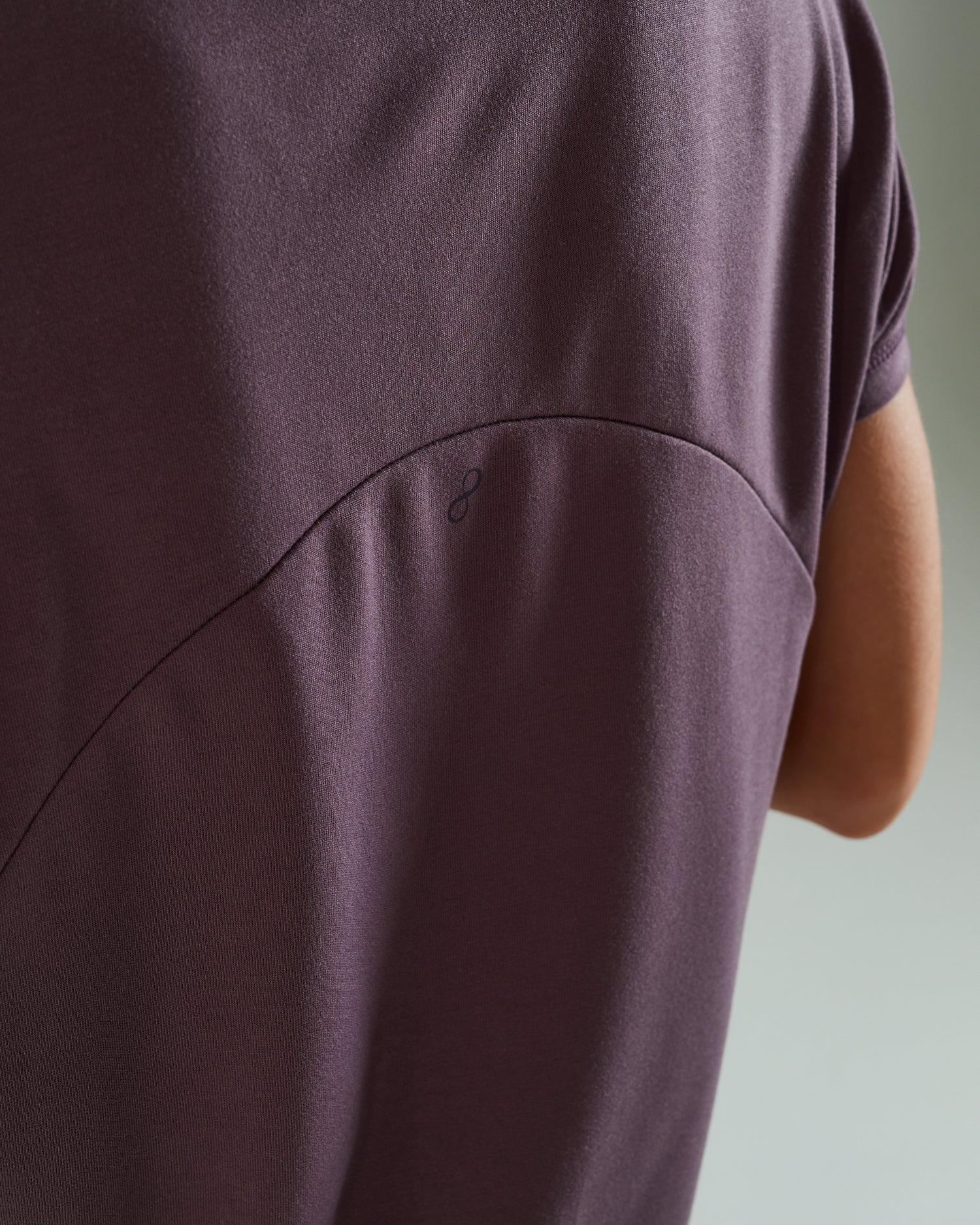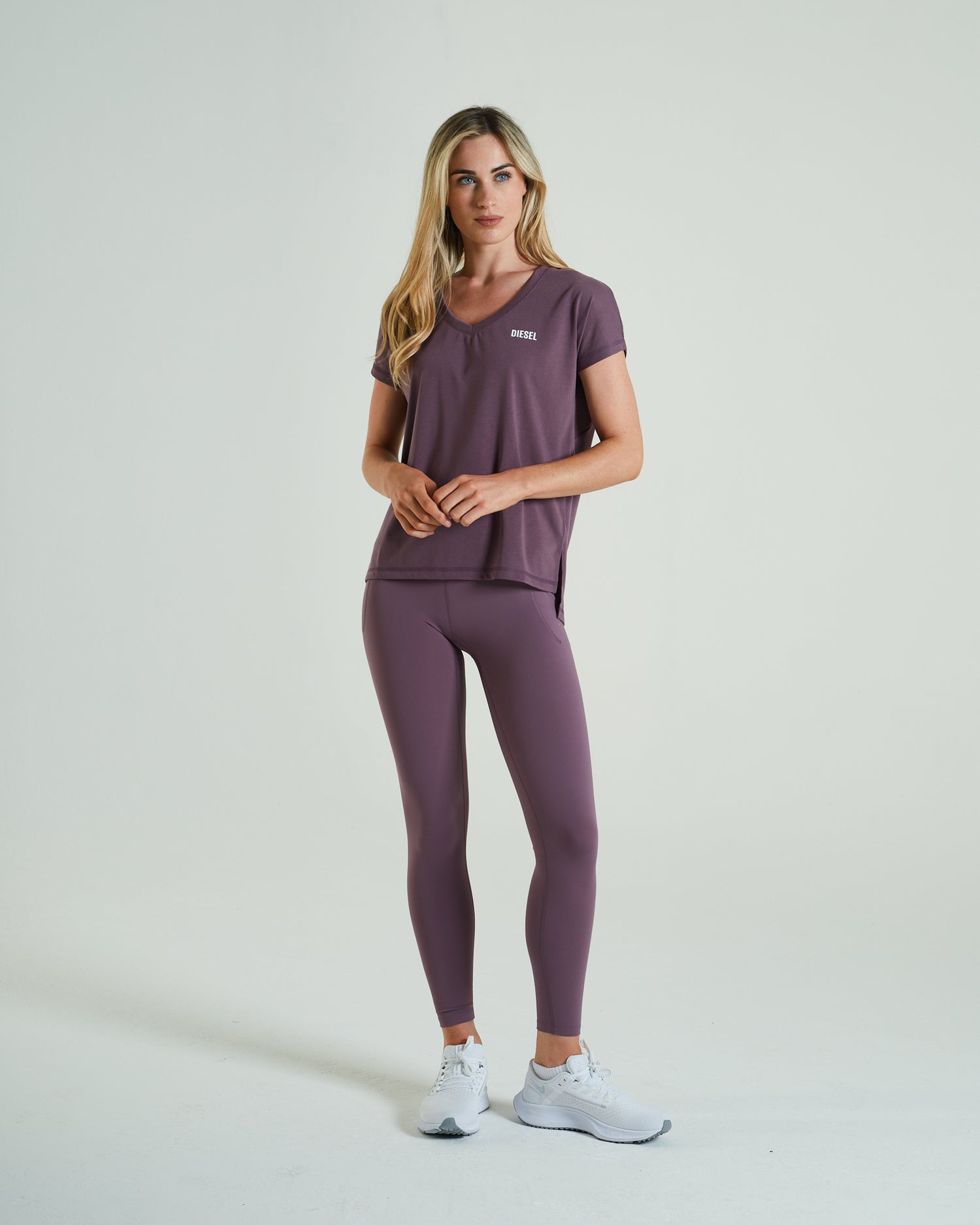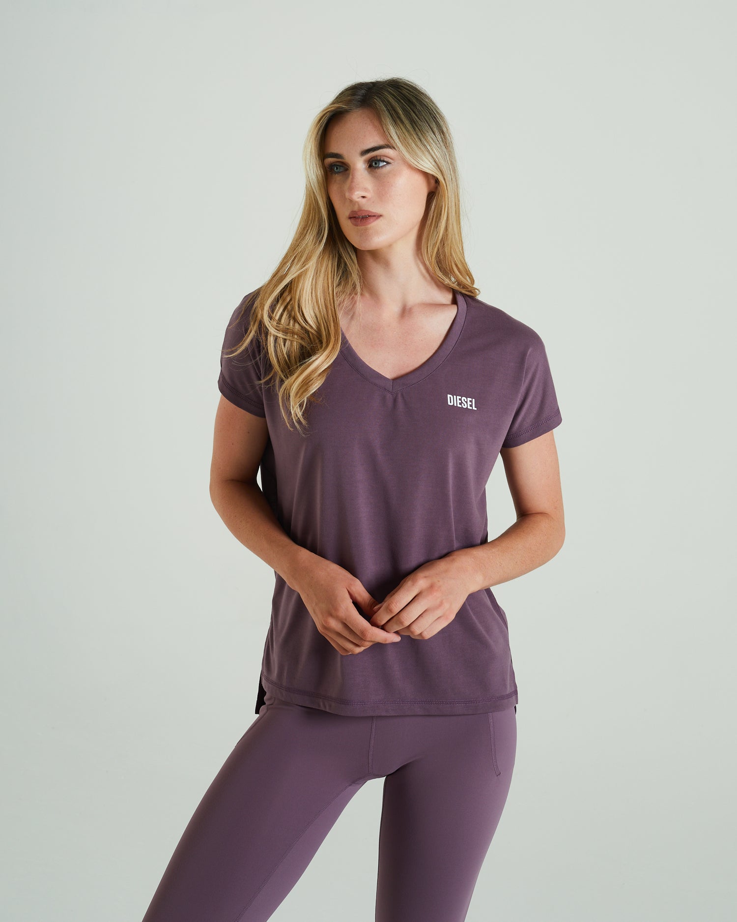 Loose V-neck T-shirt in sweat-wicking fabric with raised rubber chest branding.