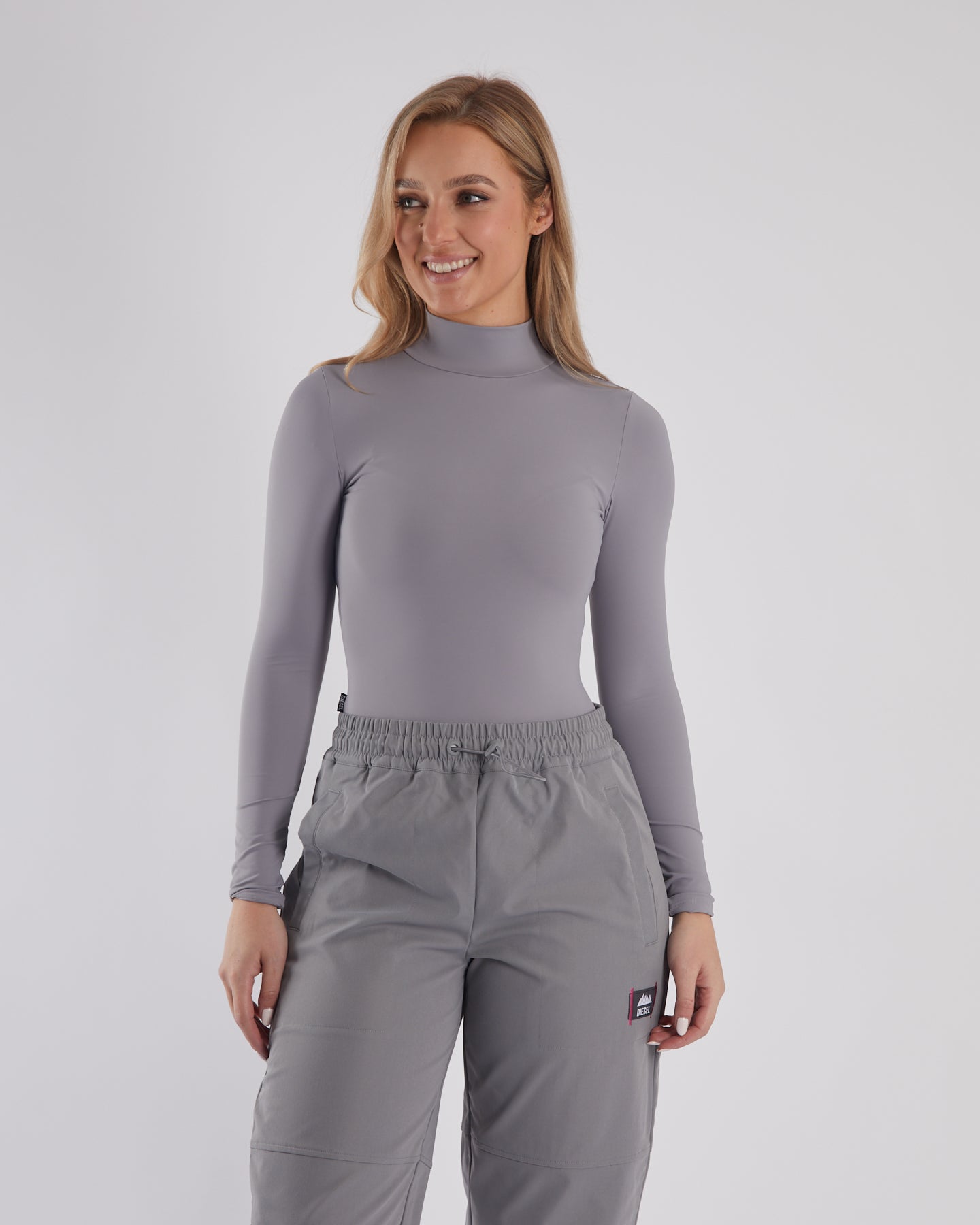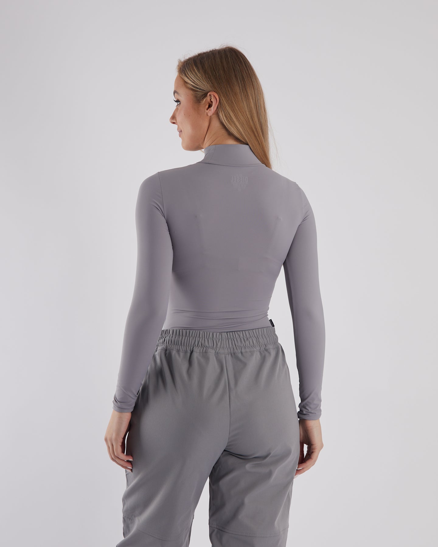 High neck bodycon bodysuit with long sleeves and double layered chest for full cover & support.