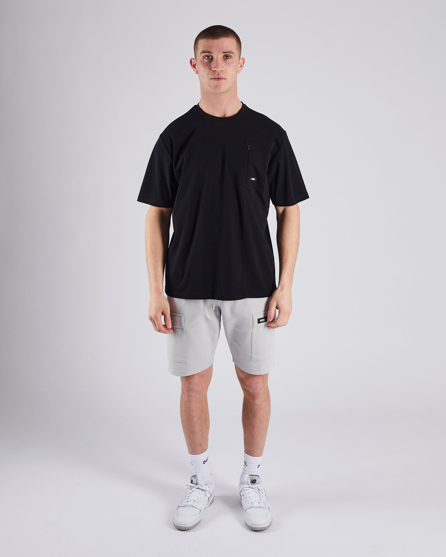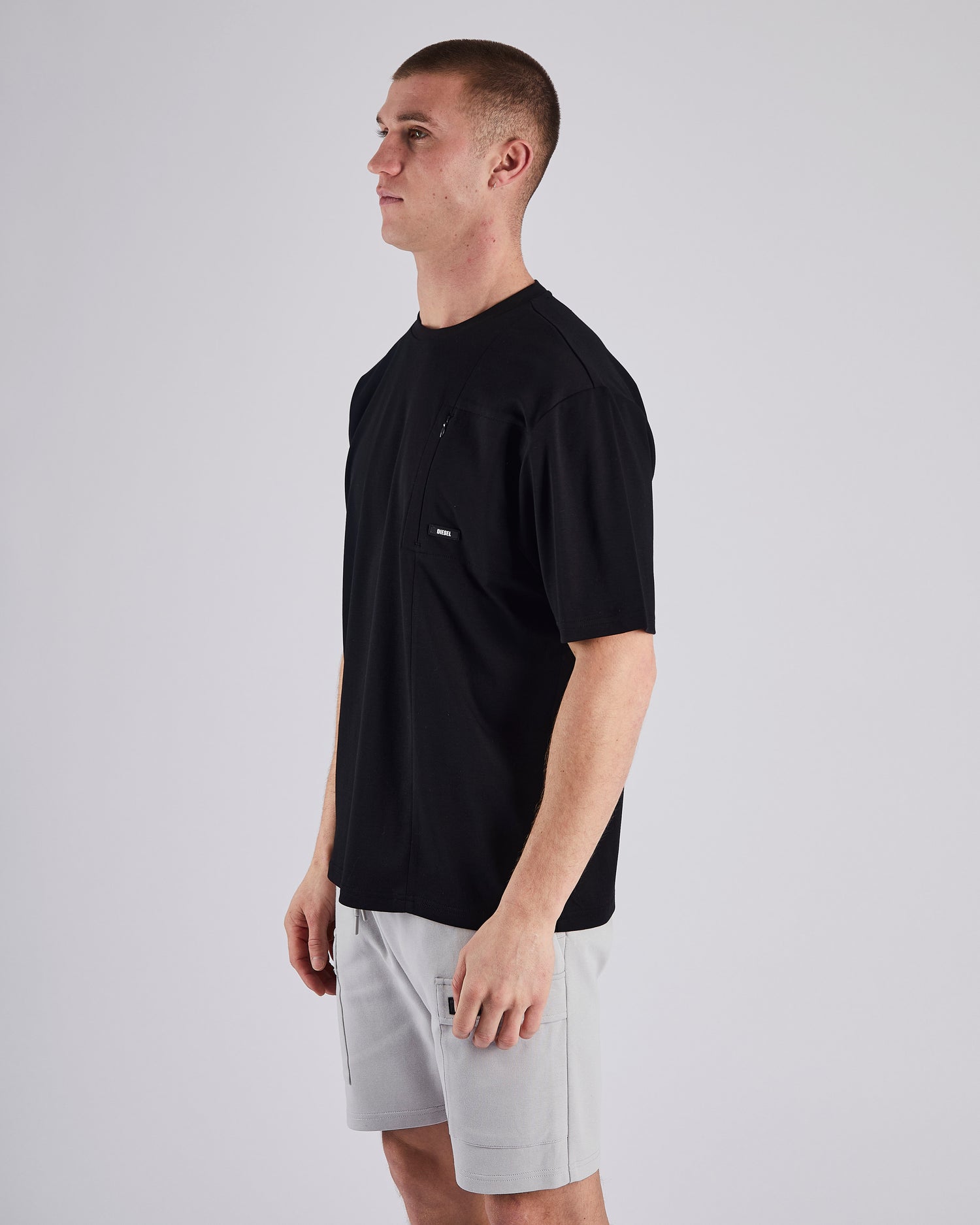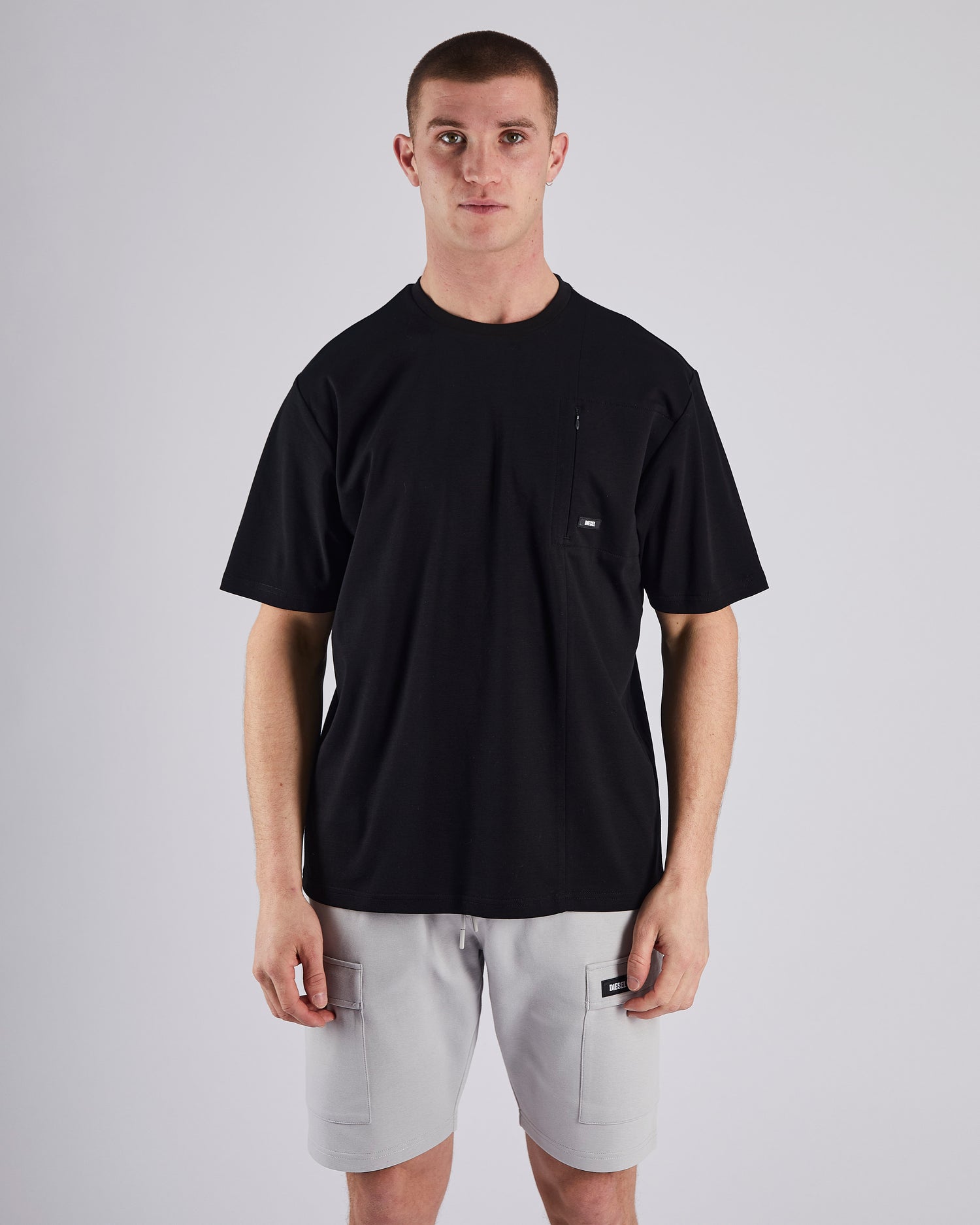 Our new smooth Pima Cotton T-shirt with concealed chest pocket features our Diesel branded badge. Wear with our new Kurt Short for an effortless street-style look.