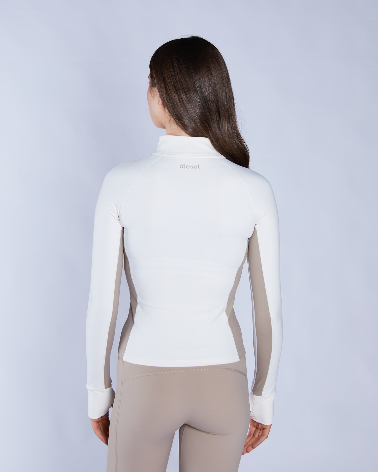 Introducing our new fit, long sleeve sculpting top. Designed for an effortless and elevated look, this features thumb holes for added comfort and warmth, raglan sleeves. Features contrasted paneling as sides and arms. Premium printed 'Diesel' logo on the chest and back neck.