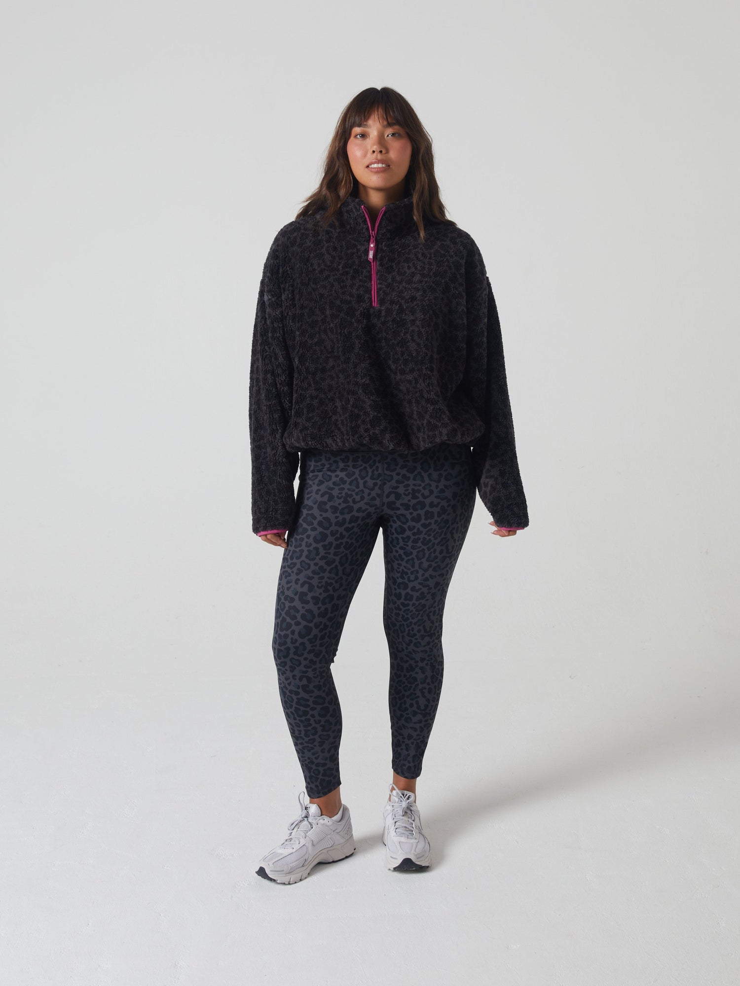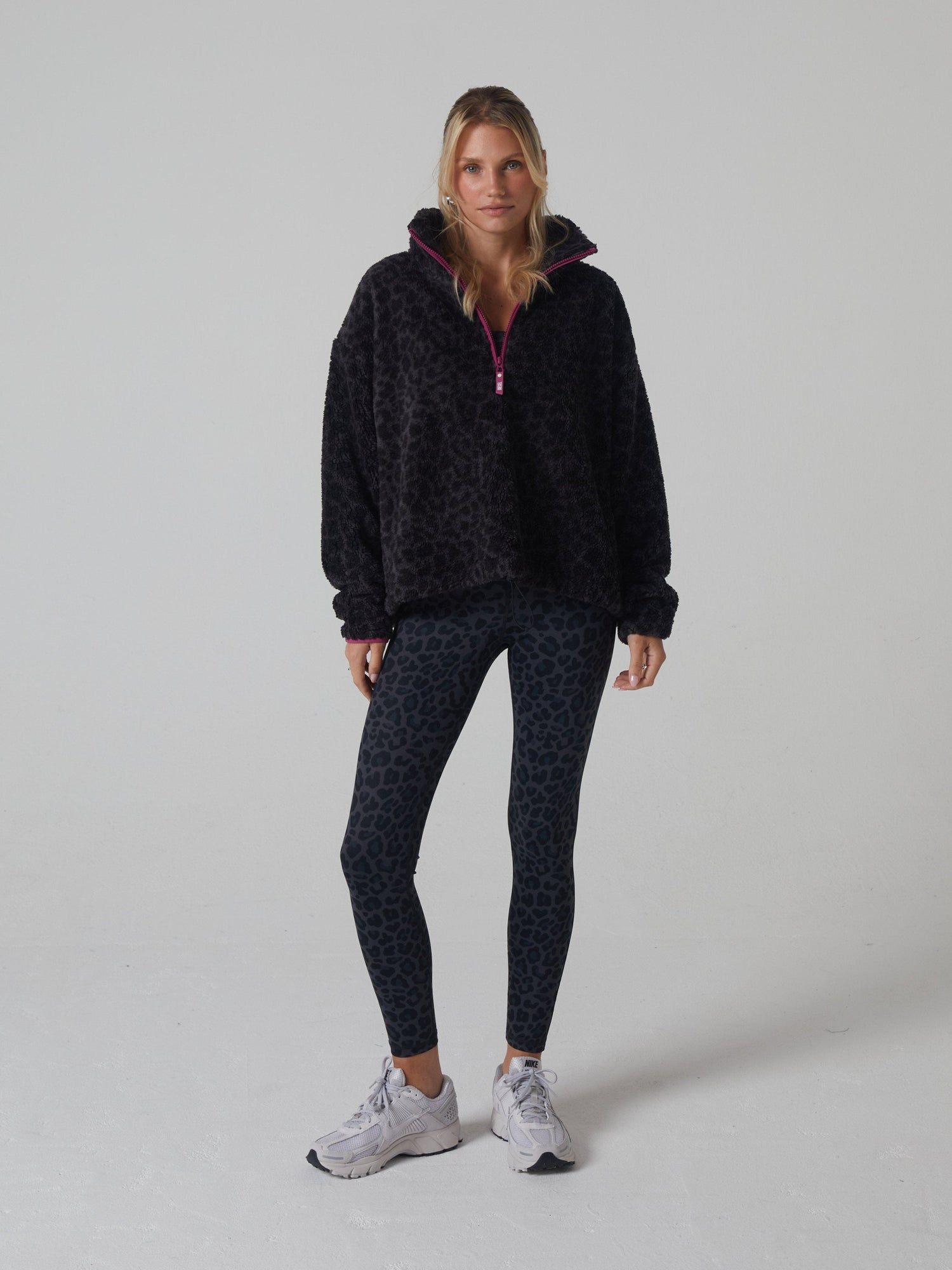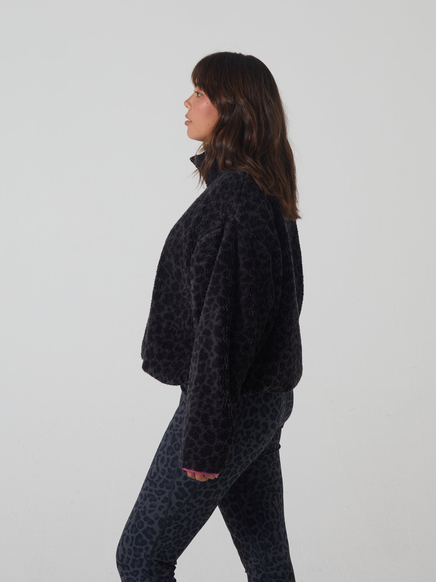 Our Relaxed fit, mid length half zip zipper. Features include super soft teddy fabric and rubber printed Diesel zip puller and inside elastic cord on hem.